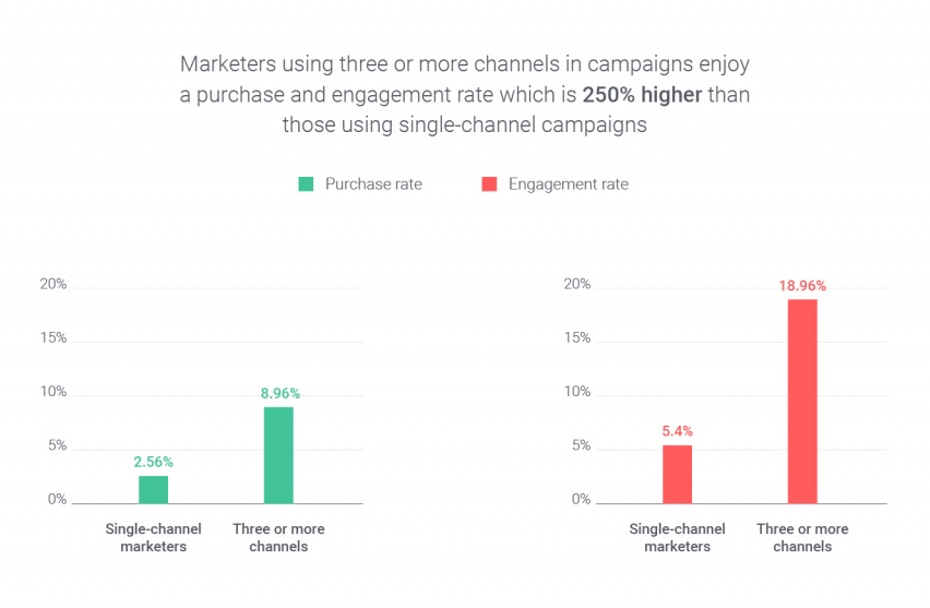 According to a recent study by ClickZ, marketers that use three or more channels have a 250% higher engagement rate than those that use a single channel: