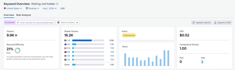 Use keyword research tools like Google Keyword Planner or Semrush to identify the terms your potential customers are searching for. These are keywords you'll want to target on your product pages and blog content to maximize your visibility in search results.