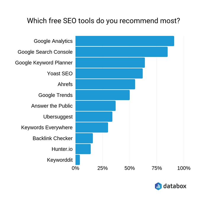 In a recent survey, marketers ranked Google Analytics and Search Console as the two best free SEO tools: