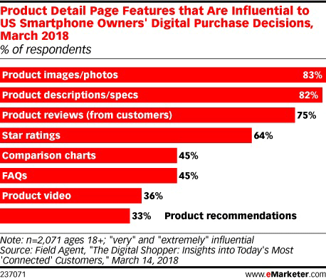 In a recent survey, product images were ranked as the most influential product page feature for US mobile shoppers: