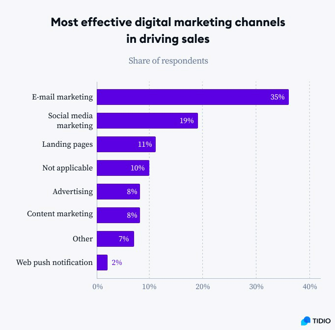 Tracking open rates and click-through rates will help you refine your strategy and improve your results. This can be a great way to boost sales. According to a recent survey, 35% of marketers believe email is the most effective digital marketing channel for driving sales: