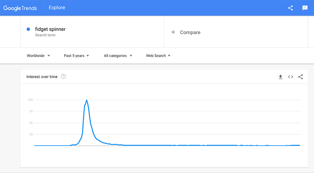 You can see what the fidget spinner fad looked like on Google Trends here.
