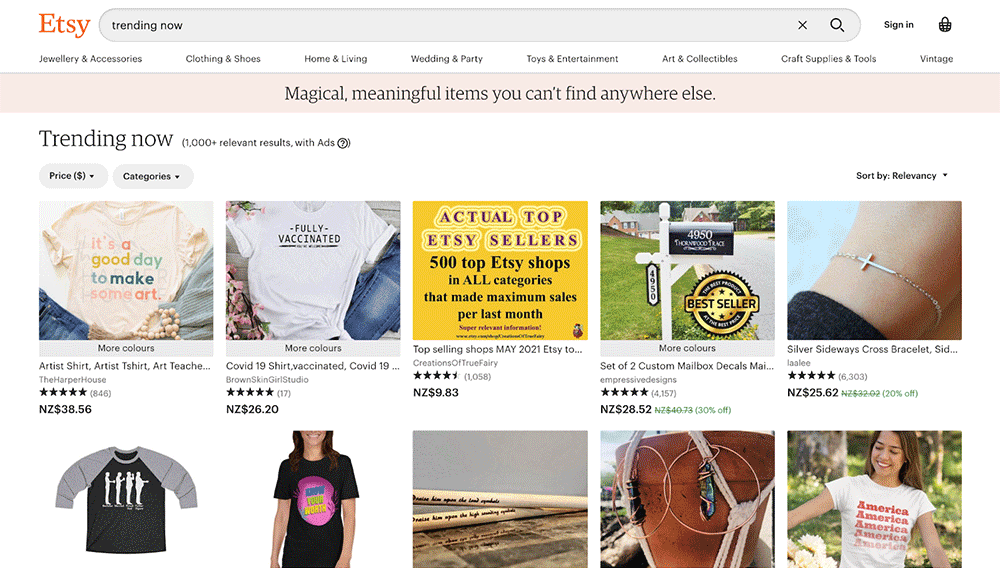 Most online marketplaces have a ‘trending’ or ‘bestselling’ section.