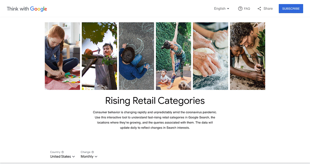 Of particular interest is the ‘Rising Retail Categories’ section.
