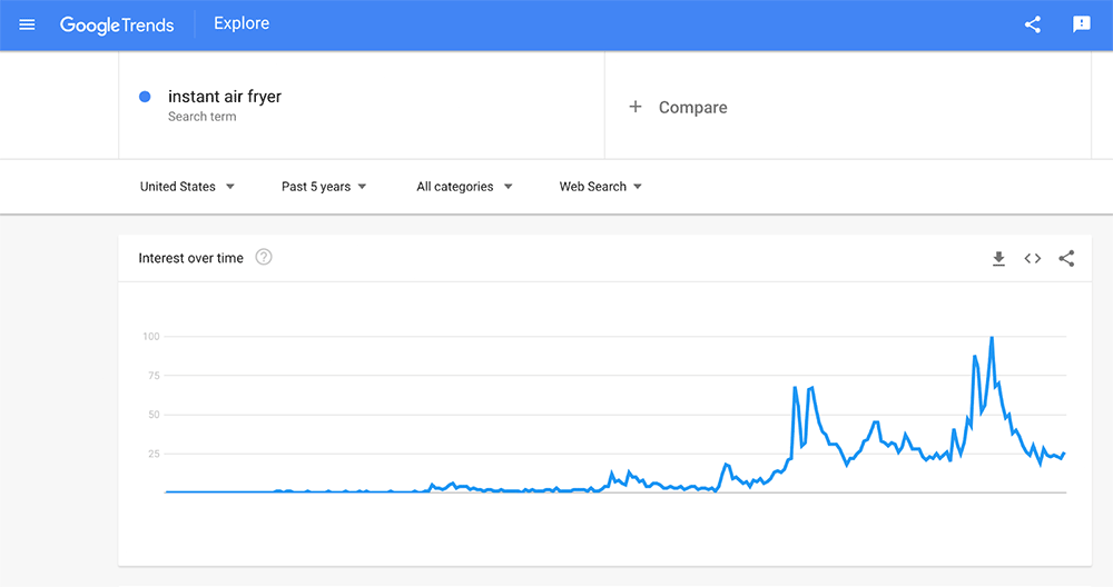 If it seems to be climbing (like the air fryer) it’s a good indication that the product is trending.