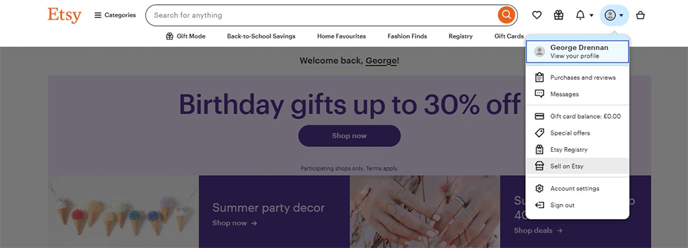 First, head over to Etsy.com and create an account if you don’t already have one. Once you’re logged in, look for the option to open your shop.