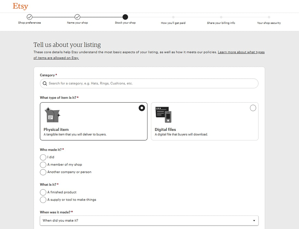 Etsy will guide you through the process. But there are a few key things to keep in mind.