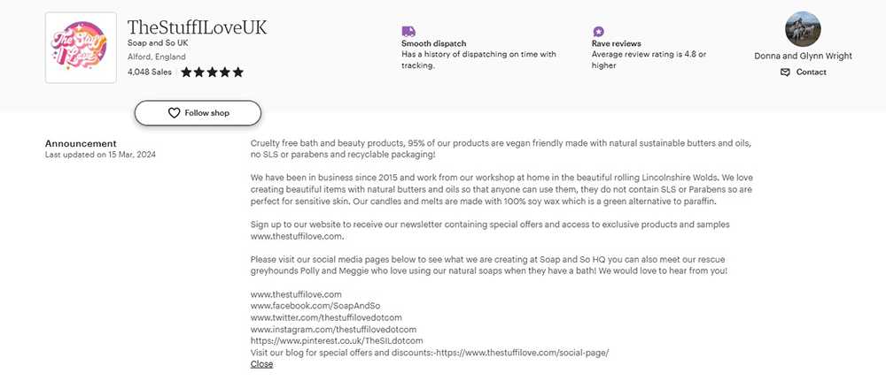 Your shop announcement is a short message that appears at the top of your shop. Use this space to welcome visitors and give them a quick overview of what you sell.