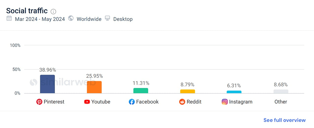 According to Similarweb, 38.96% of Etsy’s social media traffic comes from Pinterest: