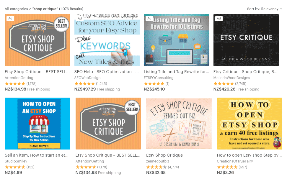 People even sell shop critique services for hundreds of dollars, teaching people how to make the most of their Etsy stores.