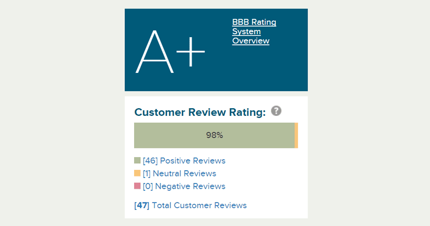 If you were to look at SaleHoo’s profile on the BBB, you’d see that we have an A+ rating, with 48 positive reviews, one neutral review, and zero bad reviews.