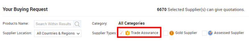 From there, you’ll be able to look at products and suppliers who have signed up with Alibaba’s trade assurance policy.