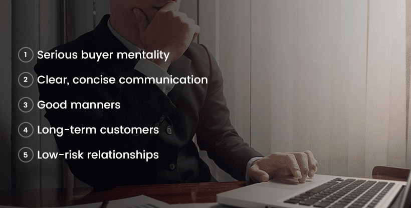 You should also project the FIVE qualities that suppliers are looking for in a new customer.