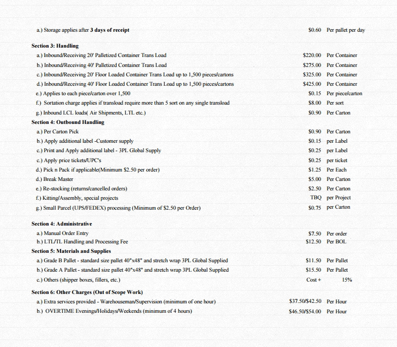 Your best bet is to talk to a customs broker or a freight company directly. Without knowing what products you're bringing in and how much, where you're storing goods, etc., I simply can't give you a good idea of what to expect. Your supplier may also be able to help -- though this certainly isn't true of every supplier.