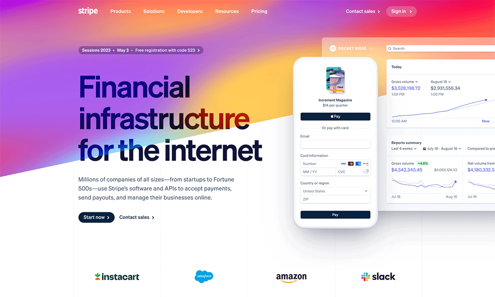 What it is: Over two million people use Stripe, and more than 3.1 million websites use it for payment processing. While many startups struggled during the pandemic, Stripe thrived and was valued at $95.6 billion as of 2021. A big reason for its exponential growth is that it accepts over 135 currencies, making it a breeze to use for global eCommerce sites and customers worldwide. And that’s why it’s number one on our list!
