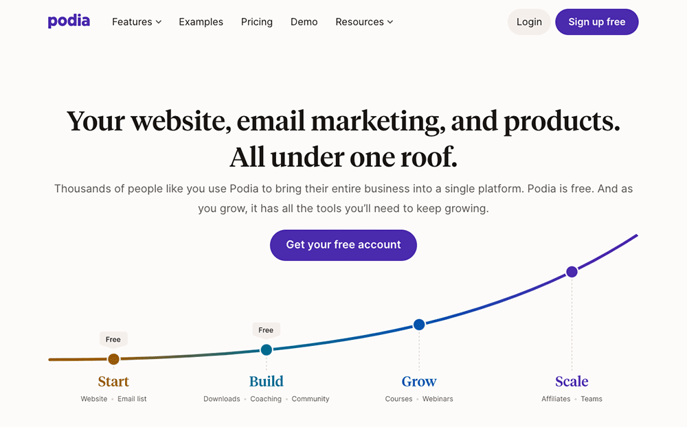 Podia is a platform where people can sell all sorts of digital products, from printables to online courses, e-books, memberships, and more. Podia is free to use with an 8% commission fee per sale, but the fee is waived for plan subscriptions starting at $33 monthly.