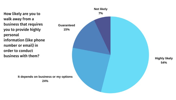 Only collect the information you really need. In a recent survey, 69% of people said they were highly likely or guaranteed to walk away from a business that required them to provide highly personal information to complete a purchase:
