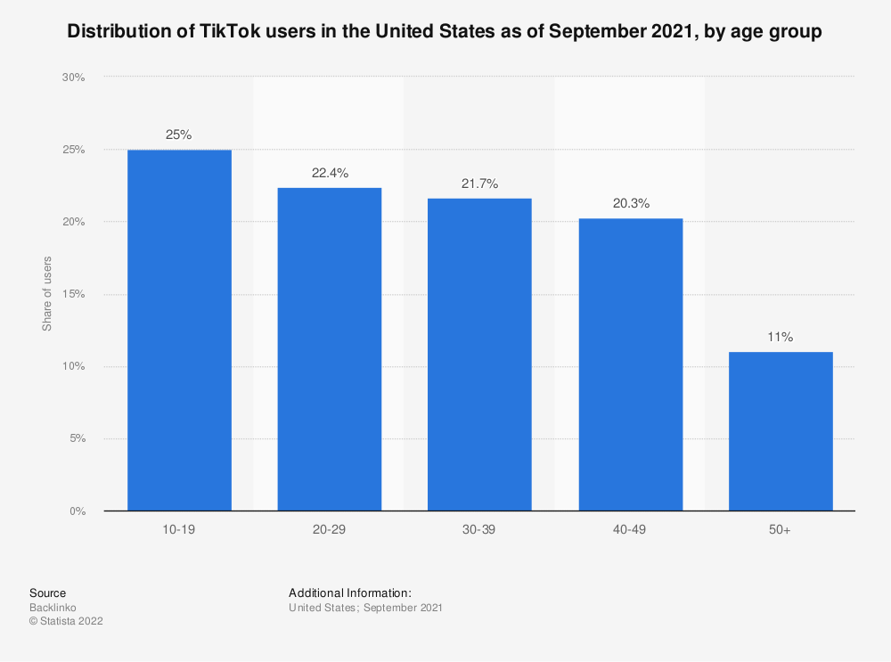 As of September 2021, 31.3% of US TikTok users were aged 40+: