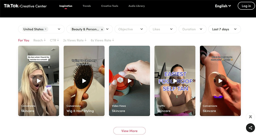 If you need some inspiration, you can visit the TikTok Creative Center to see the best-performing ads on the platform.