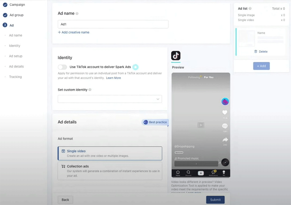 Once you’ve set up your ad group, it’s time to create your first TikTok ad.