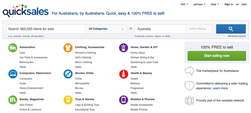 Quicksales is an online marketplace “for Australians, by Australians.” With only a monthly shop fee starting as low as $5, perhaps one of the biggest perks of Quicksales is their policy for zero listing and zero commissions fees. Categories range from cars and motorcycles to electronics, beauty products, home decor, clothing, and much more. Sellers are also able to take advantage of several verification processes that allow them to become a trusted seller and add credibility to their store.