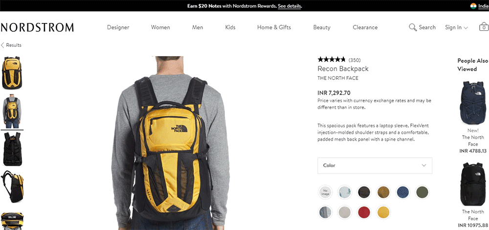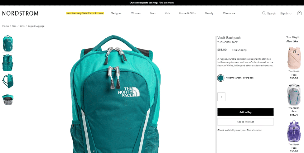 For example, Nordstrom’s eCommerce store displays North Face backpack image from every possible angle.