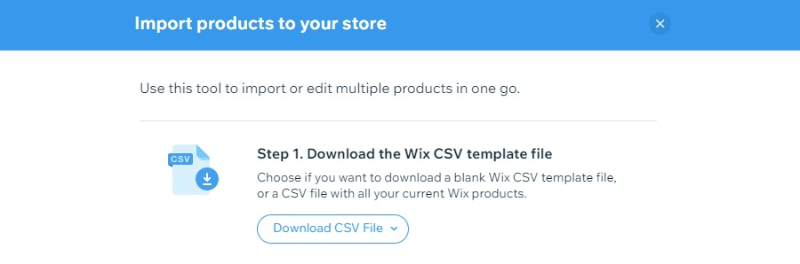While Shopify offers a bunch of integrations to import products, the easiest way to do this with Wix is to download the Wix CSV template.