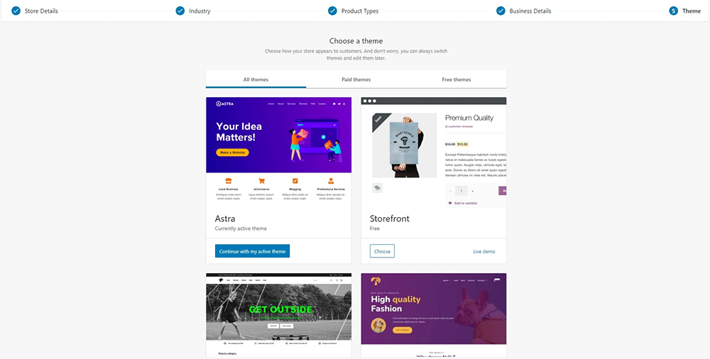 There are thousands of free and paid WordPress themes that you can use to create your WooCommerce store.