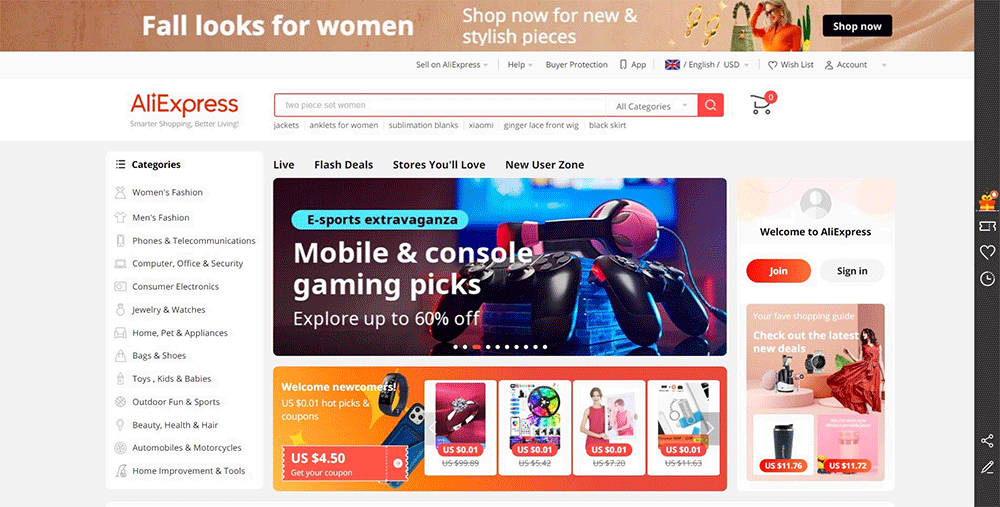 AliExpress is the first place that most people look for suppliers when they start selling online. It’s a huge directory of Chinese dropshipping suppliers that offer order fulfillment.